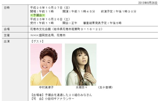 水樹奈々さんが岩手の「NHKのど自慢」にゲスト出演!